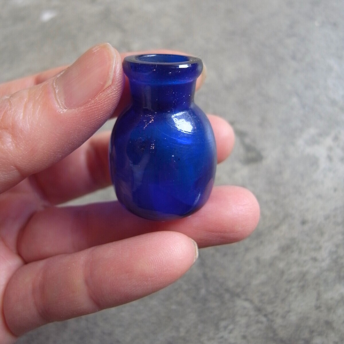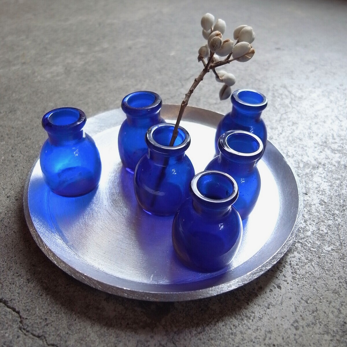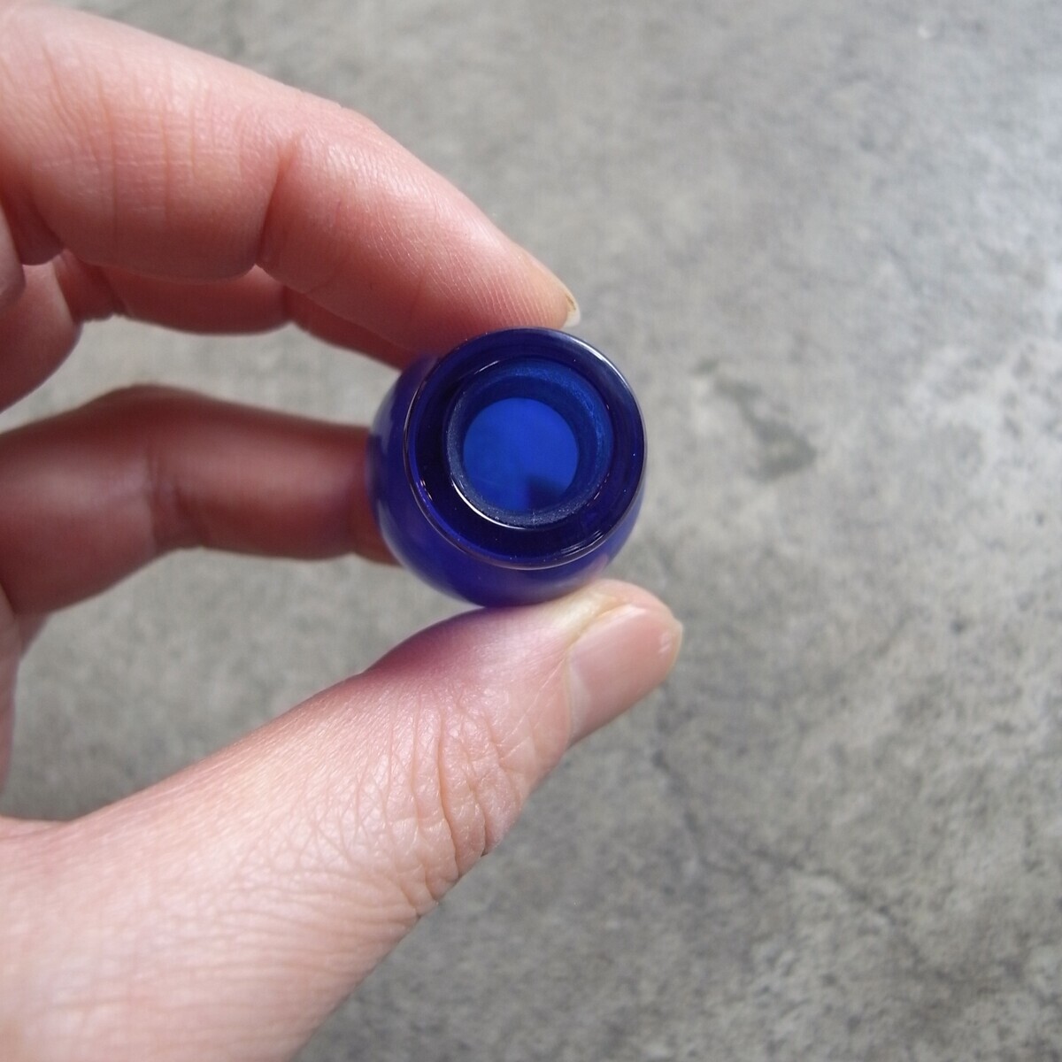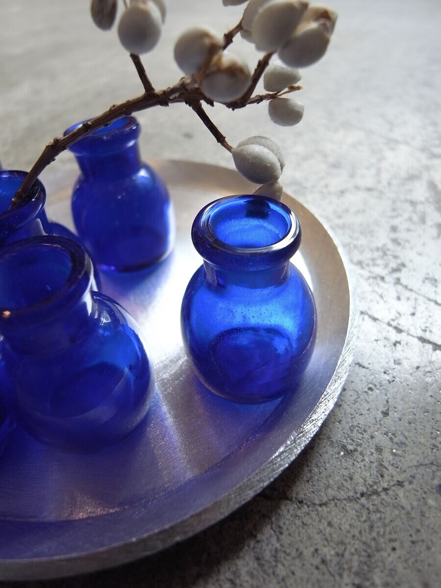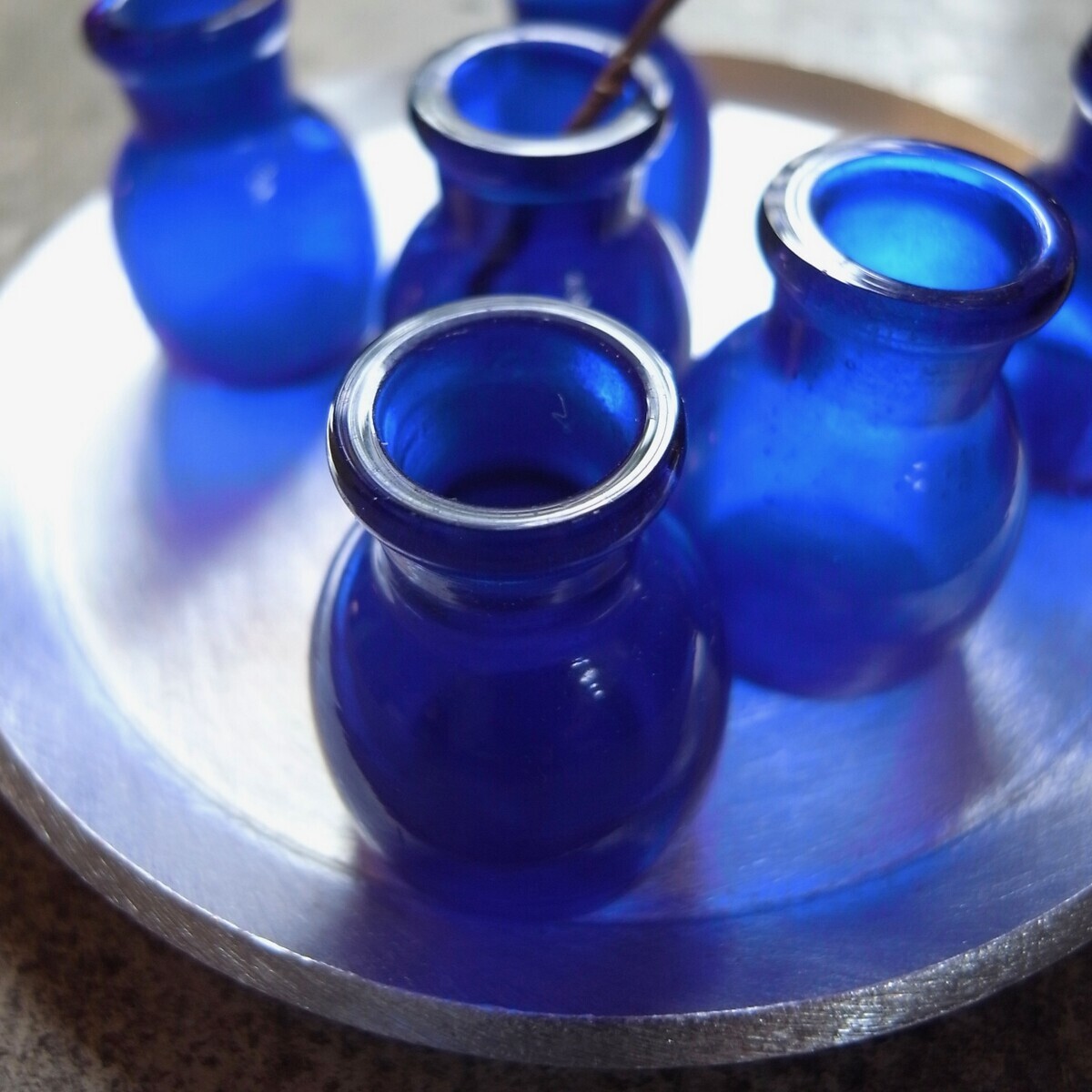 ハッと目を惹く、コバルトブルーの小さな瓶です。